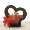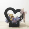 • קופסת לב מעוצבת: מארז שחור יוקרתי בצורת לב, המשמש כמסגרת מושלמת לסידור הפרחים.